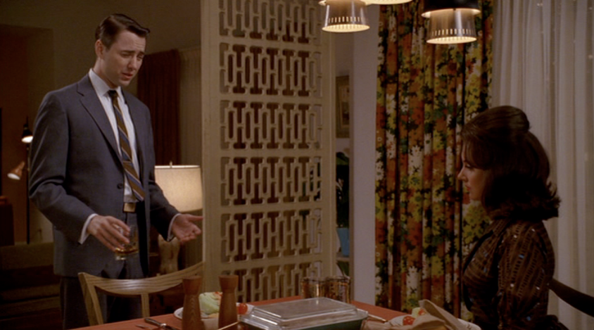 Bobbie Barrett (Melinda McGraw) and Don Draper (Jon Hamm) are heading to a beach house for some extra marital rutting. Bobbie is feeling frisky and Don's feeling... nothing. They're both drunk.