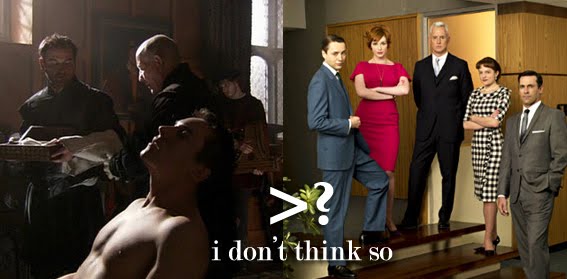 RANT! And finally because the Emmys always find some way to piss me off, it should be known that The Tudors bested Mad Men in the field of costume design. This means that Joan Bergin now has three Emmys for her four seasons of eligible work on The Tudors thus far and the absolute genius of Janie Bryant, Mad Men's costume designer, is still zero for three (though she won previously for Deadwood). Bryant goes home statueless each year of Mad Men despite delivering complex ultra-specific character costuming work with evolving period details that has also affected actual fashion trends in the outside world it's so smartly executed. Blasphemy!